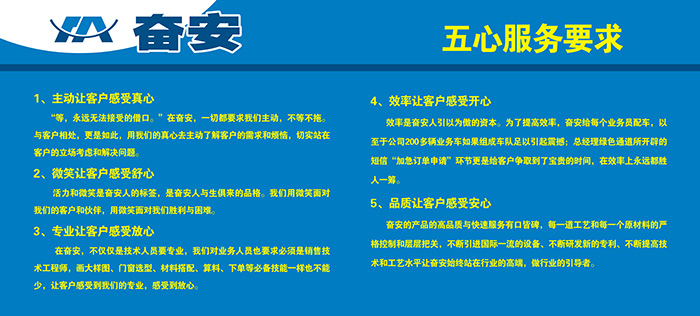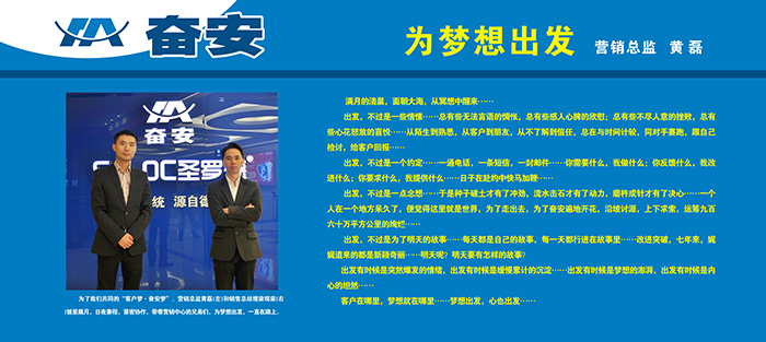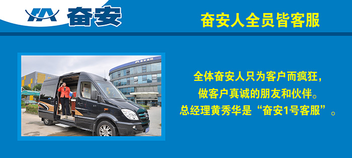一部由奮安集團(tuán)市場(chǎng)中心主辦的,匯集奮安集團(tuán)銷(xiāo)售、生產(chǎn)、后勤、物流各職能部門(mén)職員,在奮安1號(hào)客服——集團(tuán)總經(jīng)理黃秀華女士的帶領(lǐng)下,秉承“只為客戶狂——盡一切努力,只為客戶滿意”的服務(wù)理念,在日常工作中所表現(xiàn)出來(lái)的各種狂人狂事的著作《只為客戶狂》,于2014年2月11日正式出版。 奮安人全員皆客服,全體奮安人只為客戶而瘋狂,做客戶真誠(chéng)的朋友和伙伴。為感謝廣大客戶對(duì)奮安的支持與鼓勵(lì),奮安全體成員將更加用心做得更好來(lái)回報(bào)客戶,我們將嚴(yán)格按照“品質(zhì)高、交期準(zhǔn)、服務(wù)好”的標(biāo)準(zhǔn)來(lái)為客戶創(chuàng)造最大的價(jià)值。這就是我們只為客戶而瘋狂的奮安人。 (只為客戶狂)