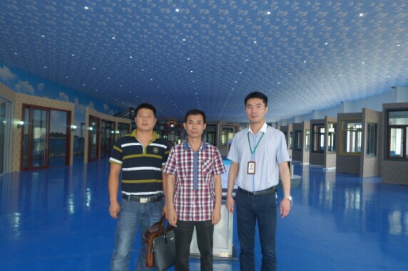 (貴賓與營(yíng)銷(xiāo)總監(jiān)在全國(guó)最大的門(mén)窗體驗(yàn)中心合影)