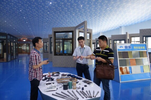 繼而,貴賓參觀(guān)全國(guó)最大的門(mén)窗體驗(yàn)中心。在體驗(yàn)中心,貴賓看到奮安大量新窗型、新系統(tǒng)窗、新表面處理:如仿古代的古鎮(zhèn)門(mén)窗、仿古欄桿、歐式系統(tǒng)門(mén)窗、現(xiàn)代窗、酒店專(zhuān)用窗,以及超細(xì)粉噴涂、4D木紋、電噴表面、特色鋁單板、鋁模板等一系列新表面、新產(chǎn)品。