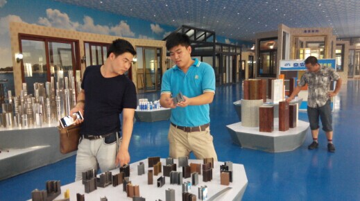 (貴賓與我司銷售人員在全國最大的門窗體驗中心合影)