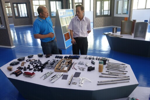 (吳副總在全國最大的門窗體驗中心向貴賓介紹我司優(yōu)質(zhì)的配套配件)