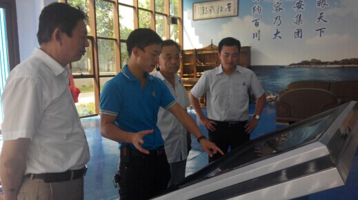 奮安集團(tuán)嚴(yán)格的生產(chǎn)運(yùn)作管理,讓貴賓們深刻地感受到企業(yè)獨(dú)特的文化魅力! (鄒副總在全國(guó)最大的門窗體驗(yàn)中心向貴賓作介紹)