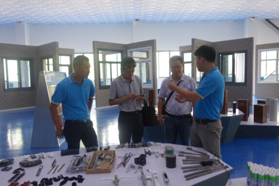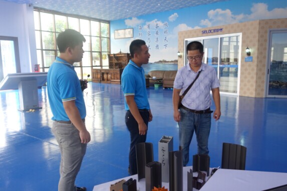 (銷售部人員在全國最大的門窗體驗(yàn)中心向貴賓作介紹)