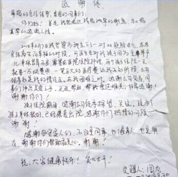 而讓我們感動(dòng)和驚喜的是,奮安工會(huì)在了解到這一情況后,馬上倡議奮安集團(tuán)全體員工進(jìn)行愛心捐款。叔叔阿姨們的捐款從幾元到幾百元,在短短兩天內(nèi)籌集善款47418.5元,并及時(shí)交至爸爸的手中。部分叔叔阿姨,由于上班原因沒(méi)來(lái)得及參與募捐,還親自送到了 我們家里。更有福清市總工會(huì)的愛心撥款及素不相識(shí)的其他公司的叔叔阿姨的愛心捐款。