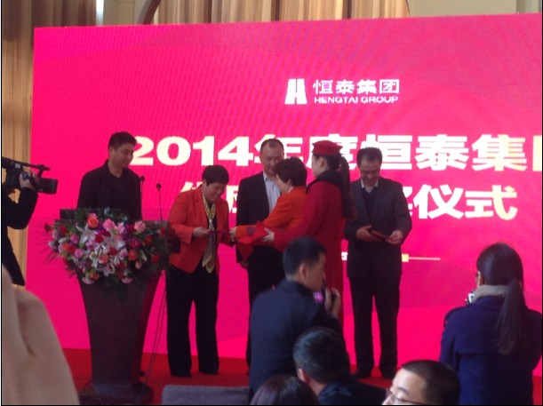 (集團總經(jīng)理黃秀華女士接受恒泰集團劉紅總裁頒發(fā)的“優(yōu)秀供應商”榮譽證書)