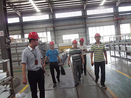 此次參觀,貴賓考察我司福清科技工業(yè)城鋁型材生產(chǎn)的各個(gè)工序時(shí),重點(diǎn)考察時(shí)效、噴砂、電泳和噴涂等工藝,贊賞我司生產(chǎn)工藝之卓越。此外,還特別參觀注膠和穿條隔熱工藝、我司新研發(fā)的“圣羅德”系統(tǒng)鋁門窗展示廳。