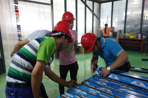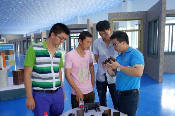 貴賓依次參觀各個生產(chǎn)車間,仔細考察我司型材生產(chǎn)的每一道工序。曾副總詳細地向貴賓介紹道,我司型材生產(chǎn)全部采用優(yōu)質(zhì)原材料,從而保證了成品鋁材的卓越品質(zhì)。