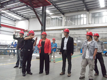 在總經(jīng)理的陪同下,貴賓們來到了鋁材生產(chǎn)的第一道工序生產(chǎn)車間——熔鑄車間。我司型材生產(chǎn)全部采用優(yōu)質(zhì)的原材料,在生產(chǎn)過程中嚴格把控各道生產(chǎn)工序,從而保證了成品鋁材的卓越品質(zhì)。隨后參觀擠壓車間、噴涂車間和氧化車間,總經(jīng)理詳細地向各位貴賓介紹鋁材生產(chǎn)的一系列過程。我司目前擁有數(shù)十臺先進的擠壓設(shè)備,多條立式噴涂線、立式氧化線、自動輸送線、自動包裝線等先進的設(shè)備,全程采用電腦自動化控制。