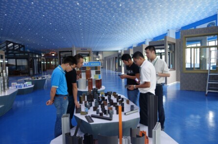 (總監(jiān)在全國最大的門窗體驗中心向貴賓作介紹)