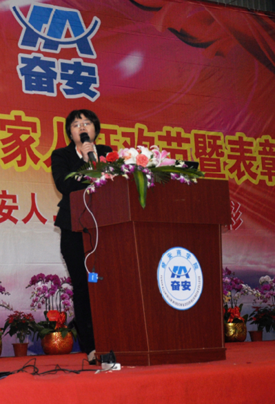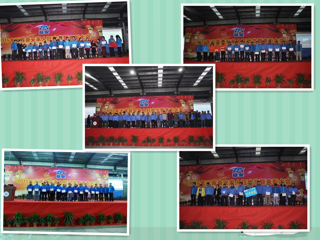 晚上,“2015年奮安家人元宵狂歡晚宴暨優(yōu)秀員工表彰大會”拉開序幕??偨?jīng)理黃秀華女士分享《感恩》及《奮安的家人很幸福》,并在現(xiàn)場對奮安大家庭的高管們下達“全力以赴做好銷量提升、產(chǎn)量提高、品質(zhì)卓越、后勤到位等保障奮安大家庭的數(shù)千個奮安小家庭幸?!钡娜蝿?wù)。