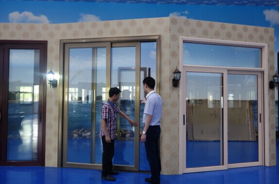 (貴賓與營(yíng)銷(xiāo)總監(jiān)在全國(guó)最大的門(mén)窗體驗(yàn)中心合影)