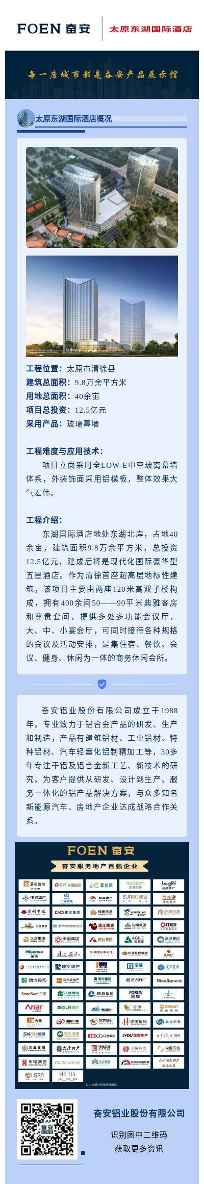 【工程項目案例】太原東湖國際酒店采用奮安鋁材