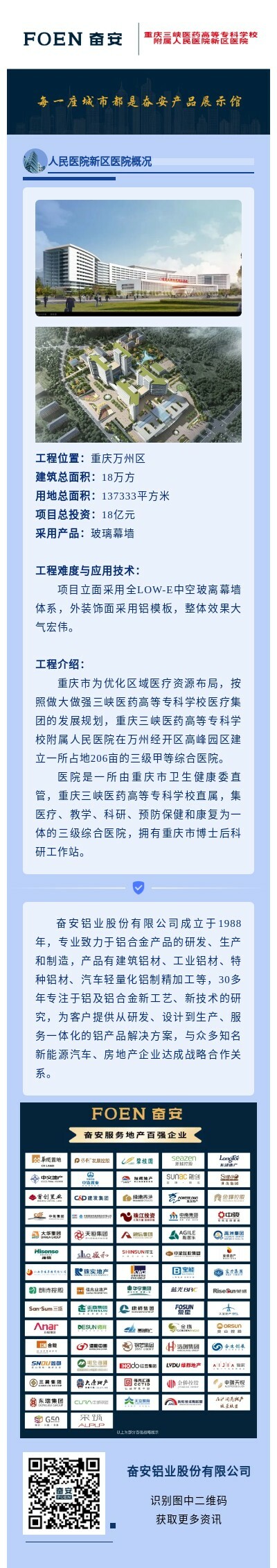 【工程項(xiàng)目案例】重慶三峽醫(yī)藥高等專科學(xué)校附屬人民醫(yī)院新區(qū)醫(yī)院采用奮安鋁材