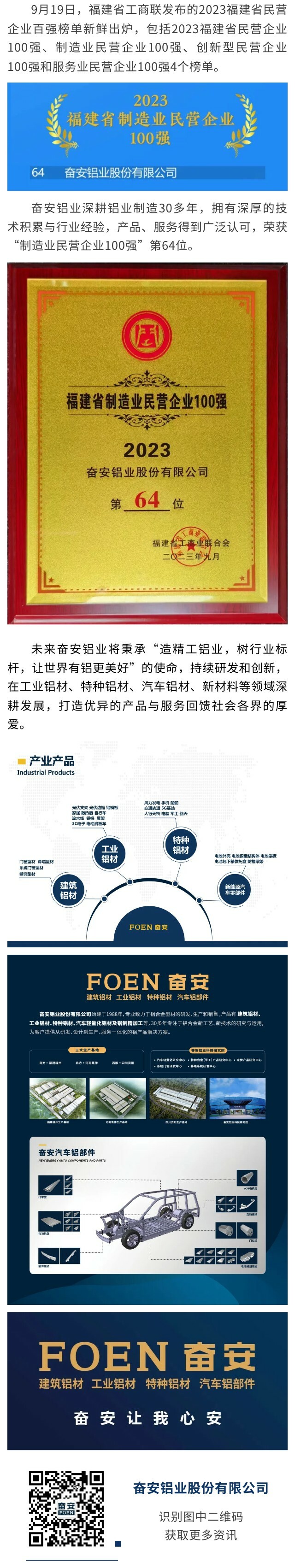 喜報|奮安入圍2023福建省民營企業(yè)百強榜
