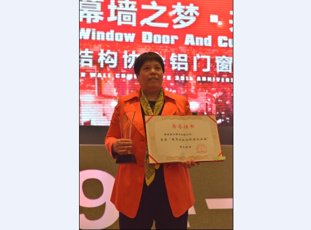 奮安集團(tuán)被中國建筑金屬結(jié)構(gòu)協(xié)會鋁門窗幕墻委員會評為“最具創(chuàng)新與價值企業(yè)”,并在2014年3月8日中國建筑金屬結(jié)構(gòu)協(xié)會鋁門窗幕墻委員會成立20周年盛大慶典上由中國建筑金屬結(jié)構(gòu)協(xié)會副秘書長黃圻給總經(jīng)理黃秀華女士頒發(fā)證書及獎杯。