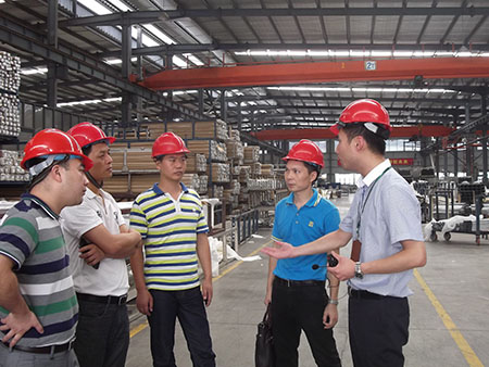 此次參觀,貴賓考察我司福清科技工業(yè)城鋁型材生產(chǎn)的各個(gè)工序時(shí),重點(diǎn)考察時(shí)效、噴砂、電泳和噴涂等工藝,贊賞我司生產(chǎn)工藝之卓越。此外,還特別參觀注膠和穿條隔熱工藝、我司新研發(fā)的“圣羅德”系統(tǒng)鋁門窗展示廳。