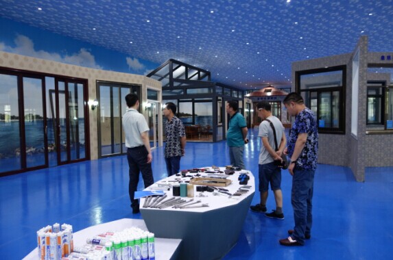 此次考察,將加強雙方在型材采購方面合作的信心。 (總監(jiān)在全國最大的門窗體驗中心向貴賓作介紹)