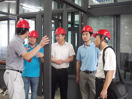 在董事長、陳副總經(jīng)理的陪同下,來賓除參觀各生產(chǎn)車間外,還特別考察我司“圣羅德”鋁門窗系統(tǒng)展示廳。